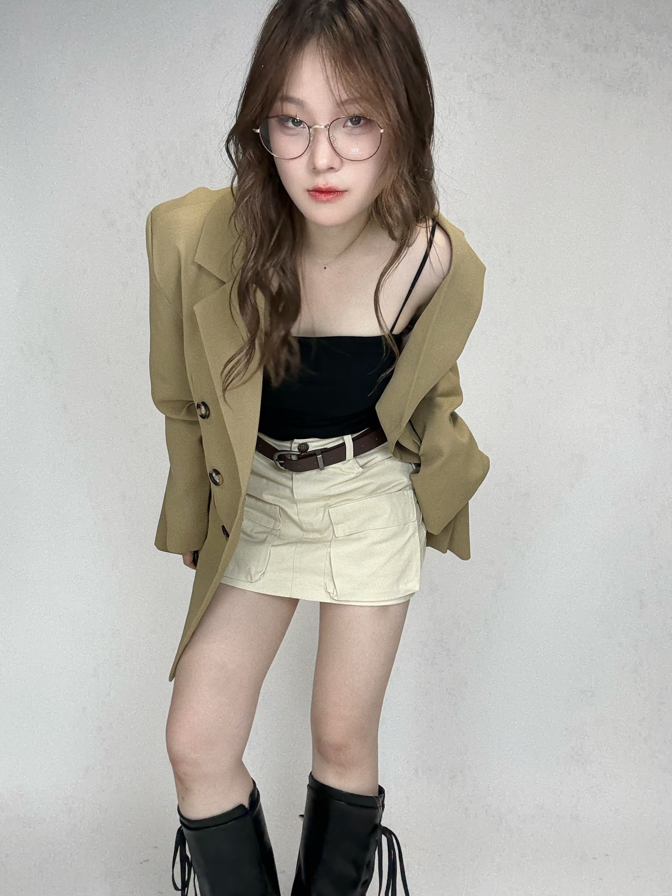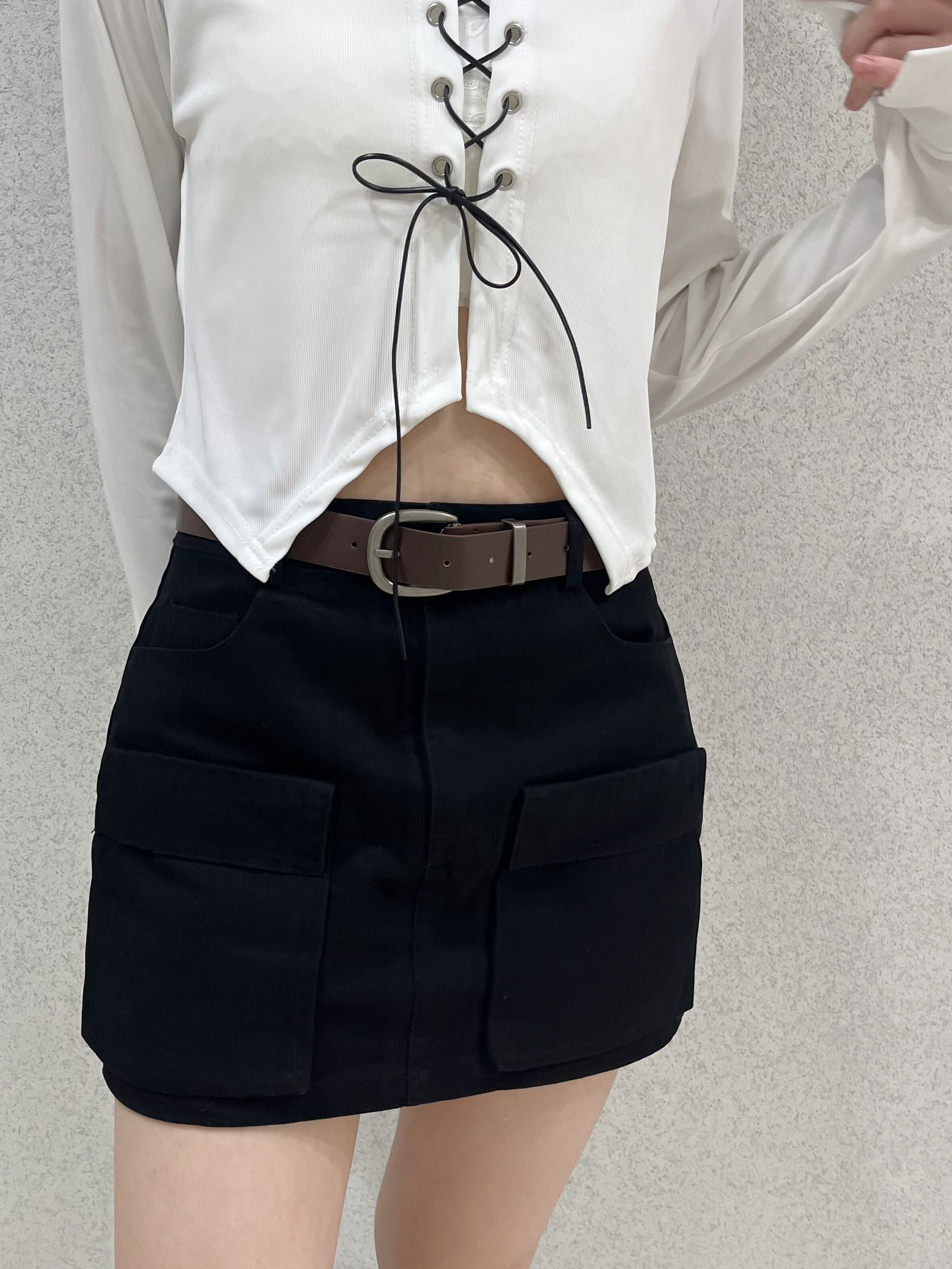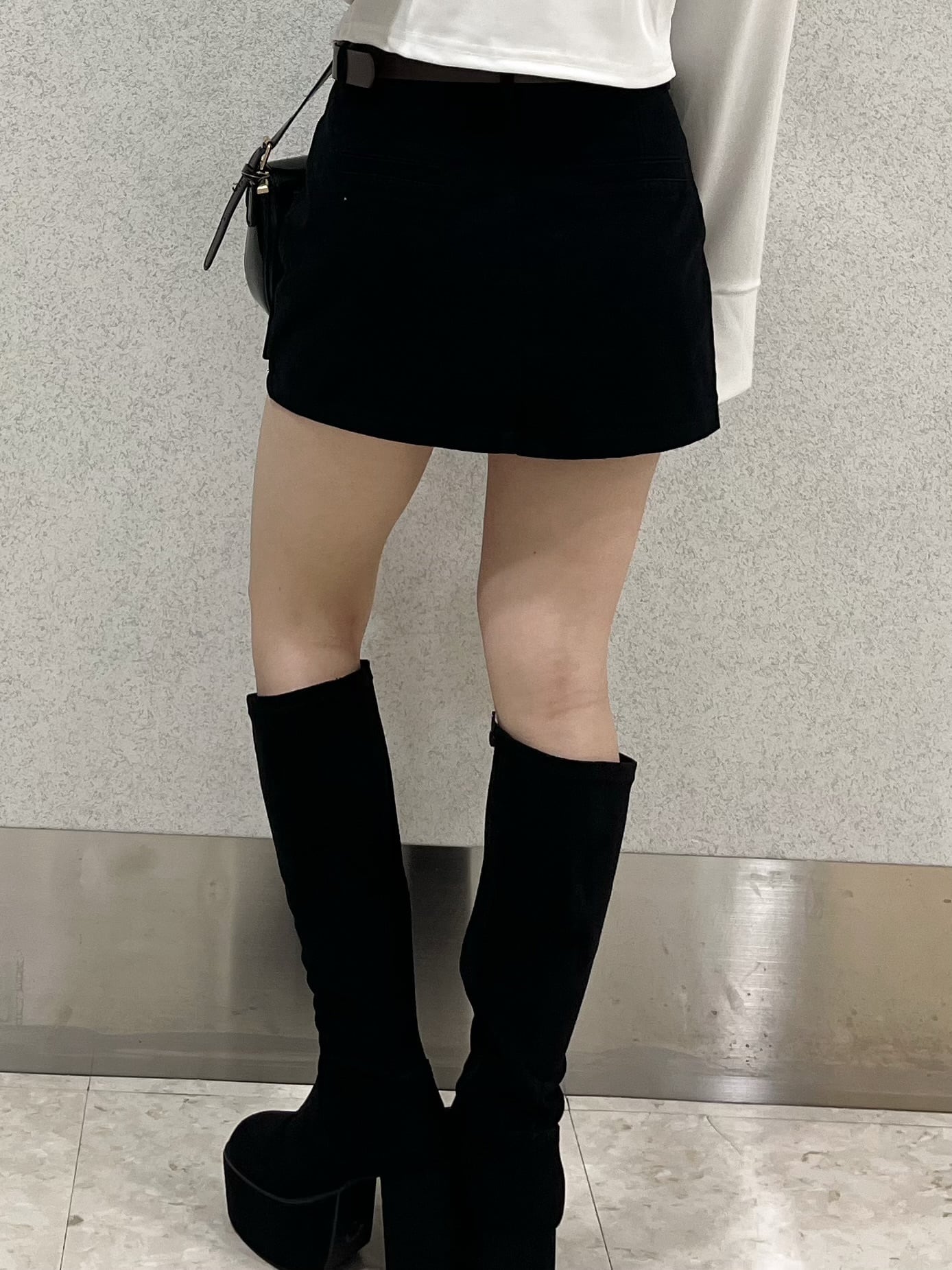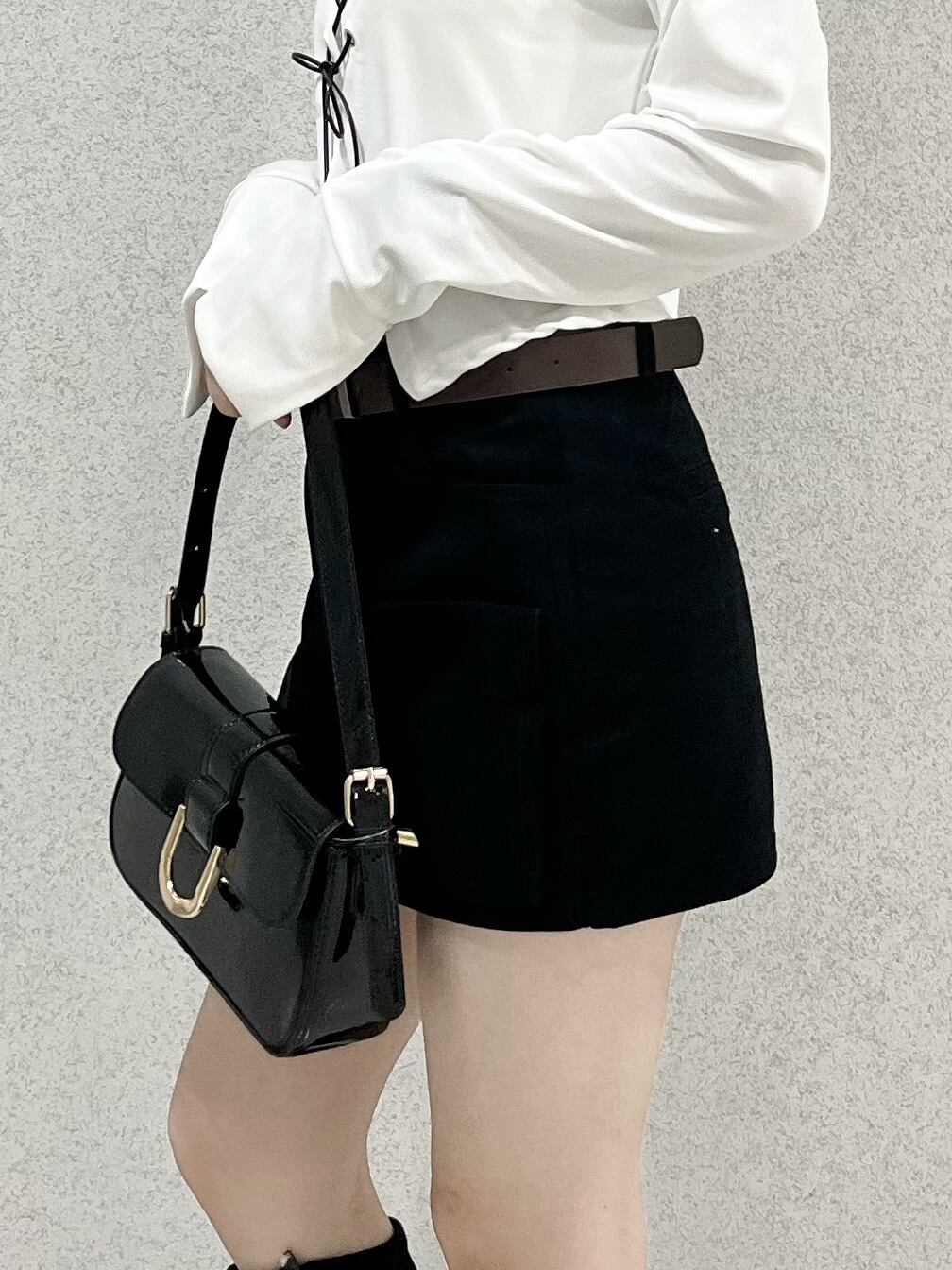 裏地がインナーパンツになったスカパン仕様なので、ミニ丈ですが1枚で安心して着られるのも