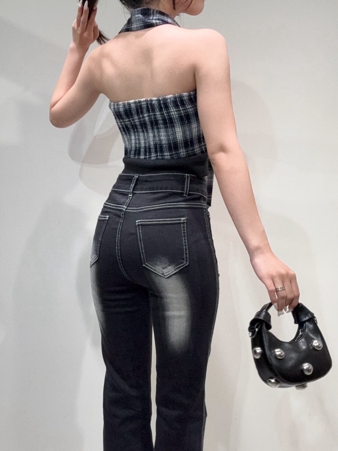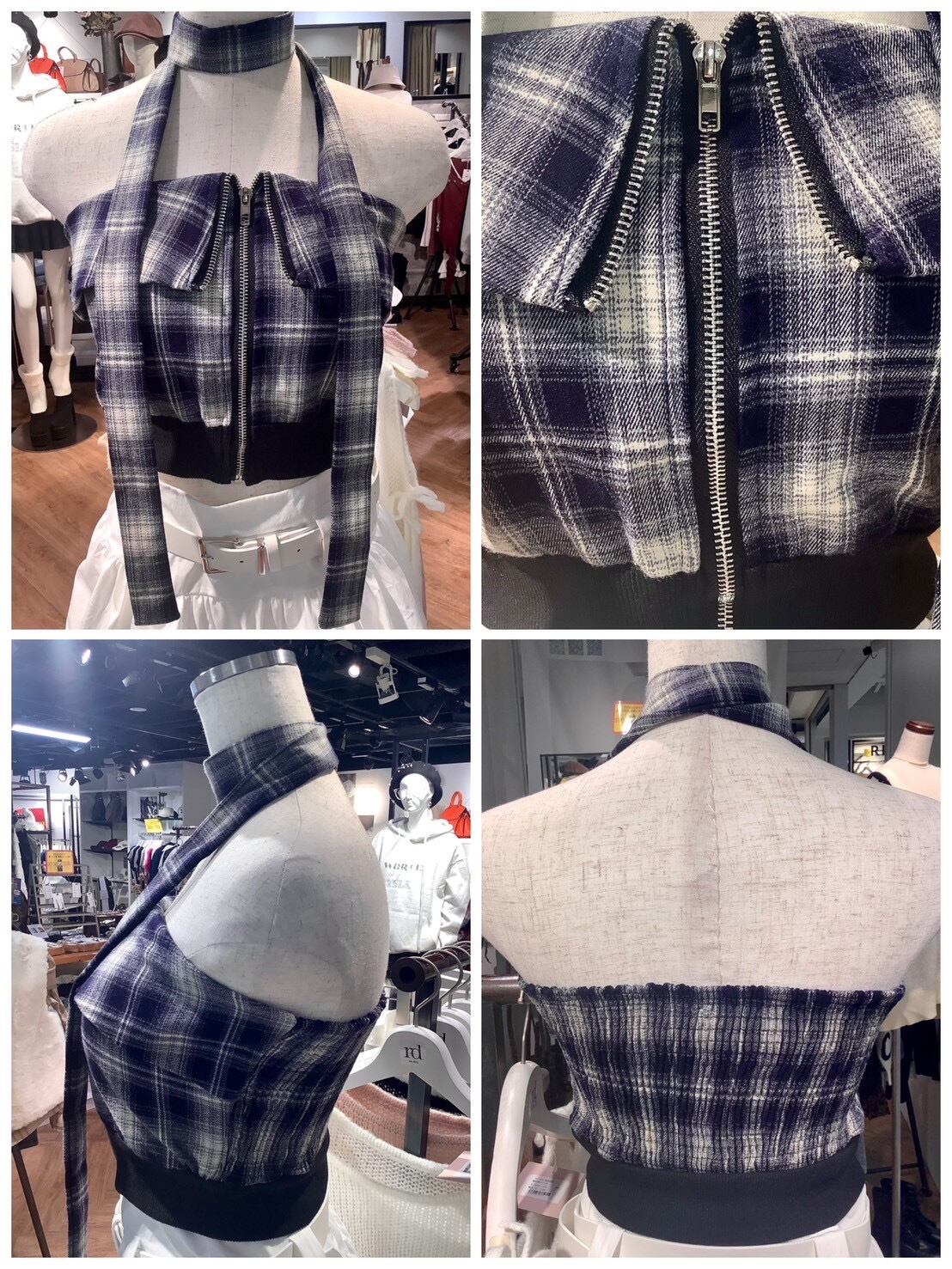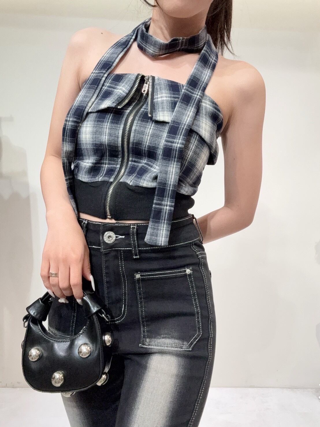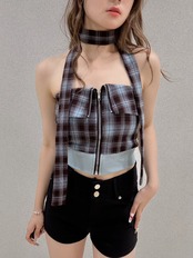 チェック柄が可愛らしいジップベアトップ、チョーカー付きでスタイリッシュ感を演出!しっかりとした素材感で、デイリーから特別な日まで幅広く活躍します。シンプルなボトムスと合わせるだけで、コーディネートが決まる優れものです。