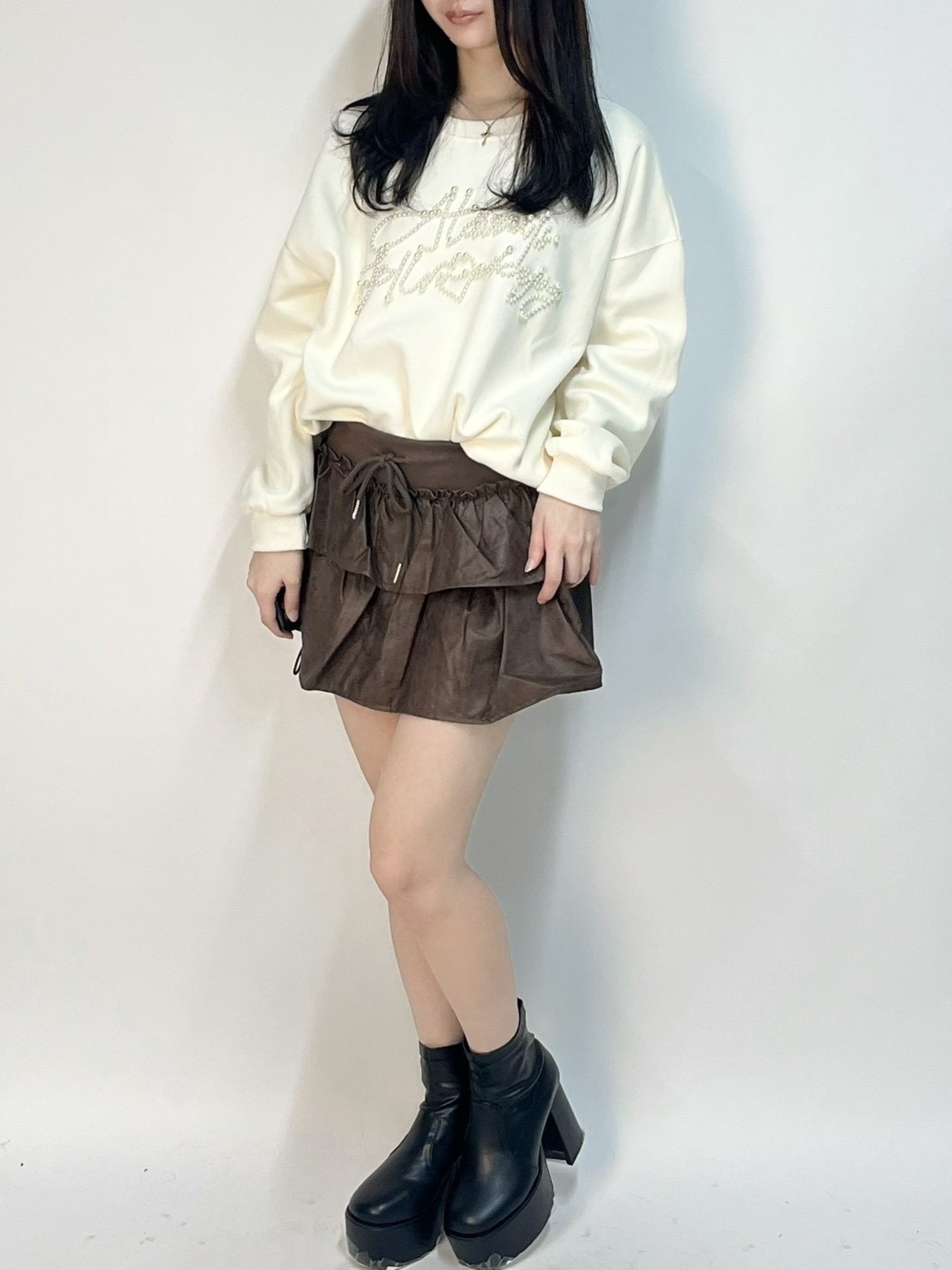 フリルミニSKは、洗練された素材感とかわいらしいフリルデザインが特徴のミニスカートです!女性らしさを引き立てつつ、カジュアルなコーディネートにもマッチするアイテムです。軽やかな動きが出るフリルは、どんなシーンでも華やかさを演出してくれます。シンプルなトップスと合わせて、大人可愛いスタイルを楽しんでください!