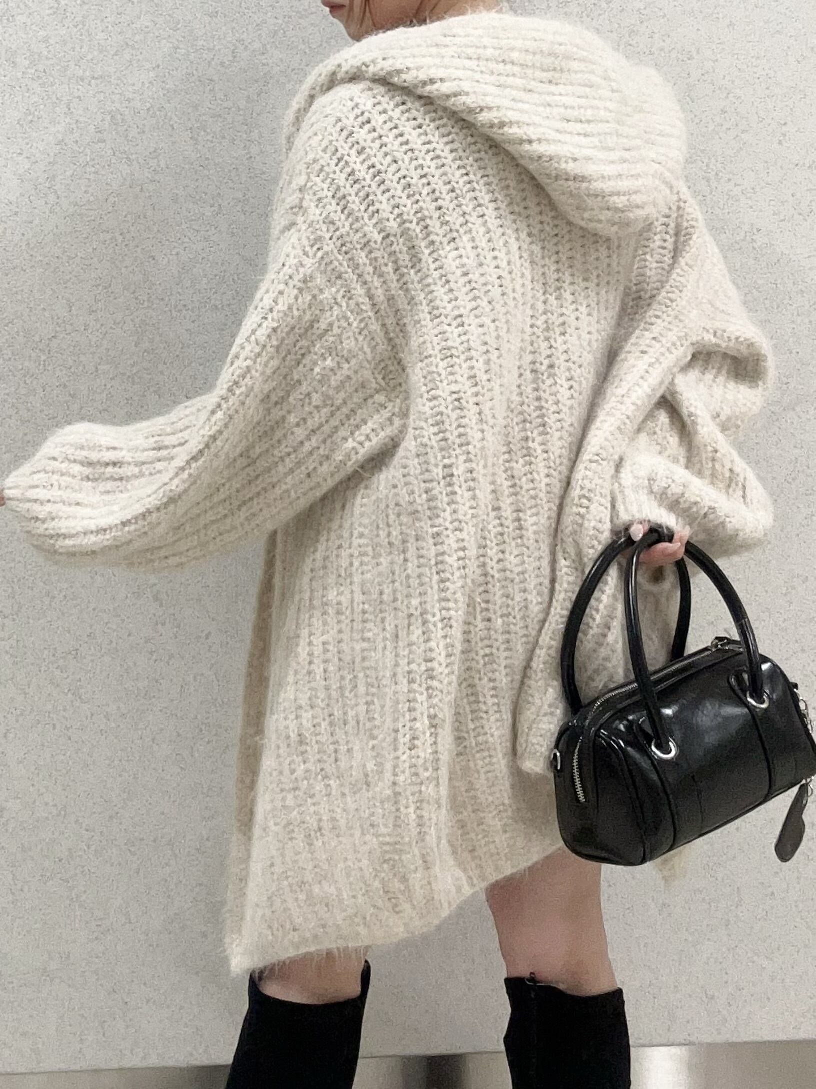 ローゲージニットガウンは、ゆったりとしたシルエットと柔らかなニット素材が魅力の一着です!大きな編み目が魅力的で、リラックスしたい日のコーディネートにぴったりです。カジュアルなおしゃれを楽しむための最適なアイテムで、優しい肌触りが心地よく、デイリーから特別な日まで幅広く楽しんでいただけます!