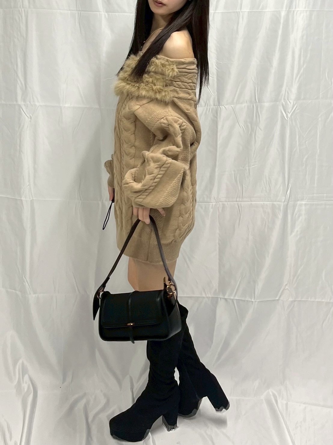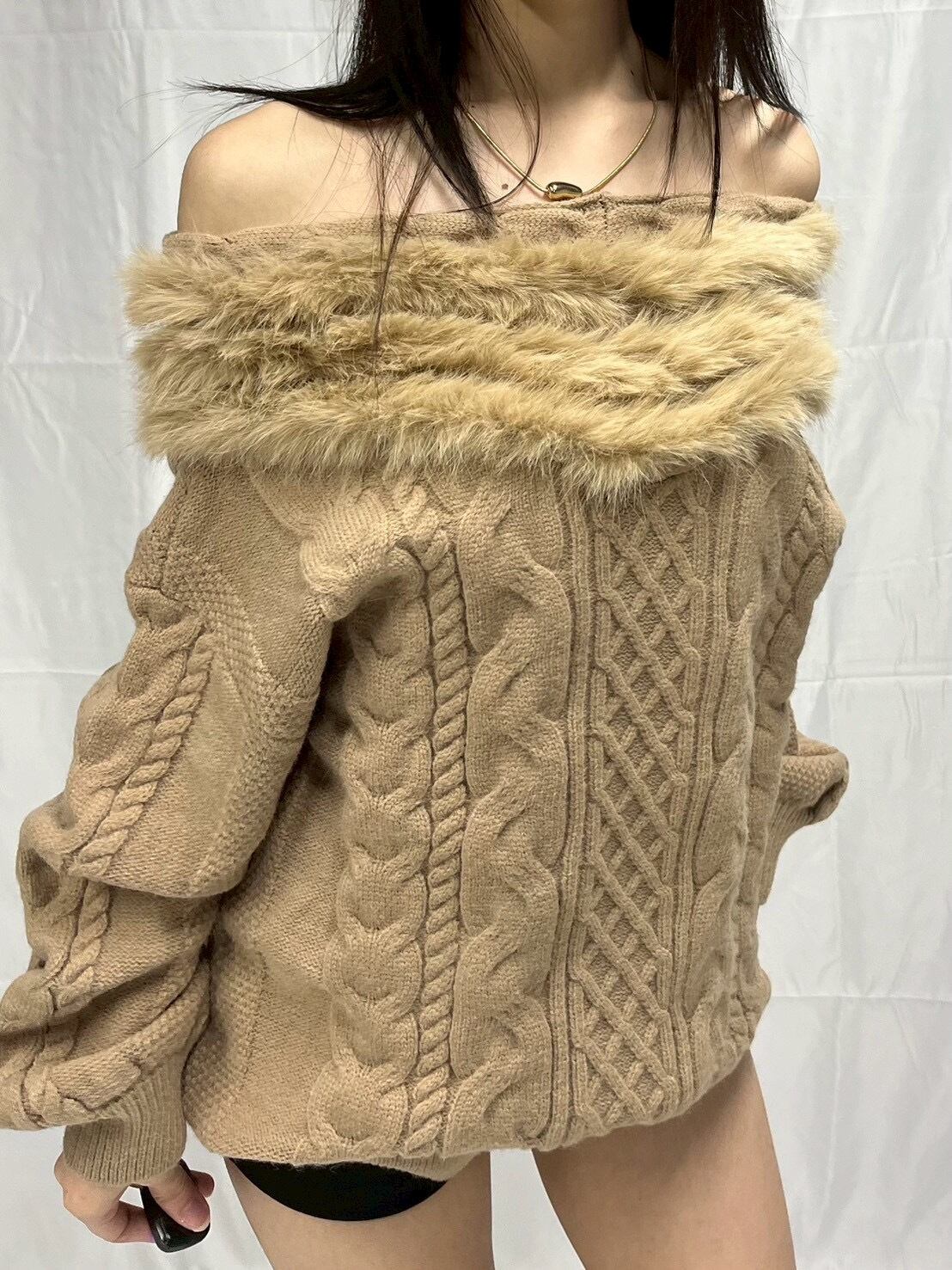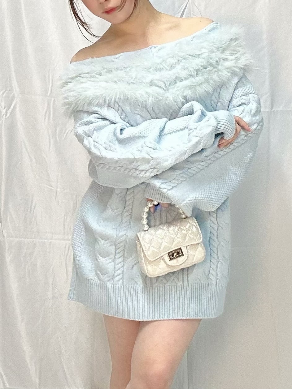 オフショルダーファーニットは、魅力的なオフショルダーのデザインとミニワンピスタイルが特徴の一着です!柔らかなファーニット素材が肌に優しく、着心地抜群で、ルーズでありながらもエレガントな印象を与えます。