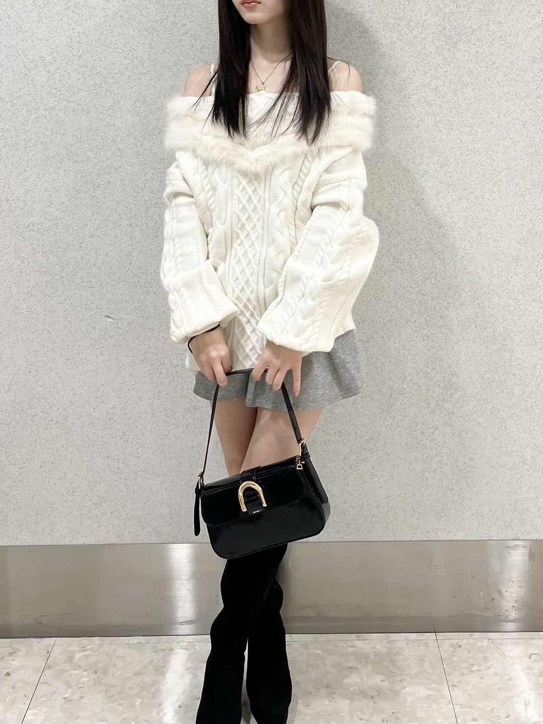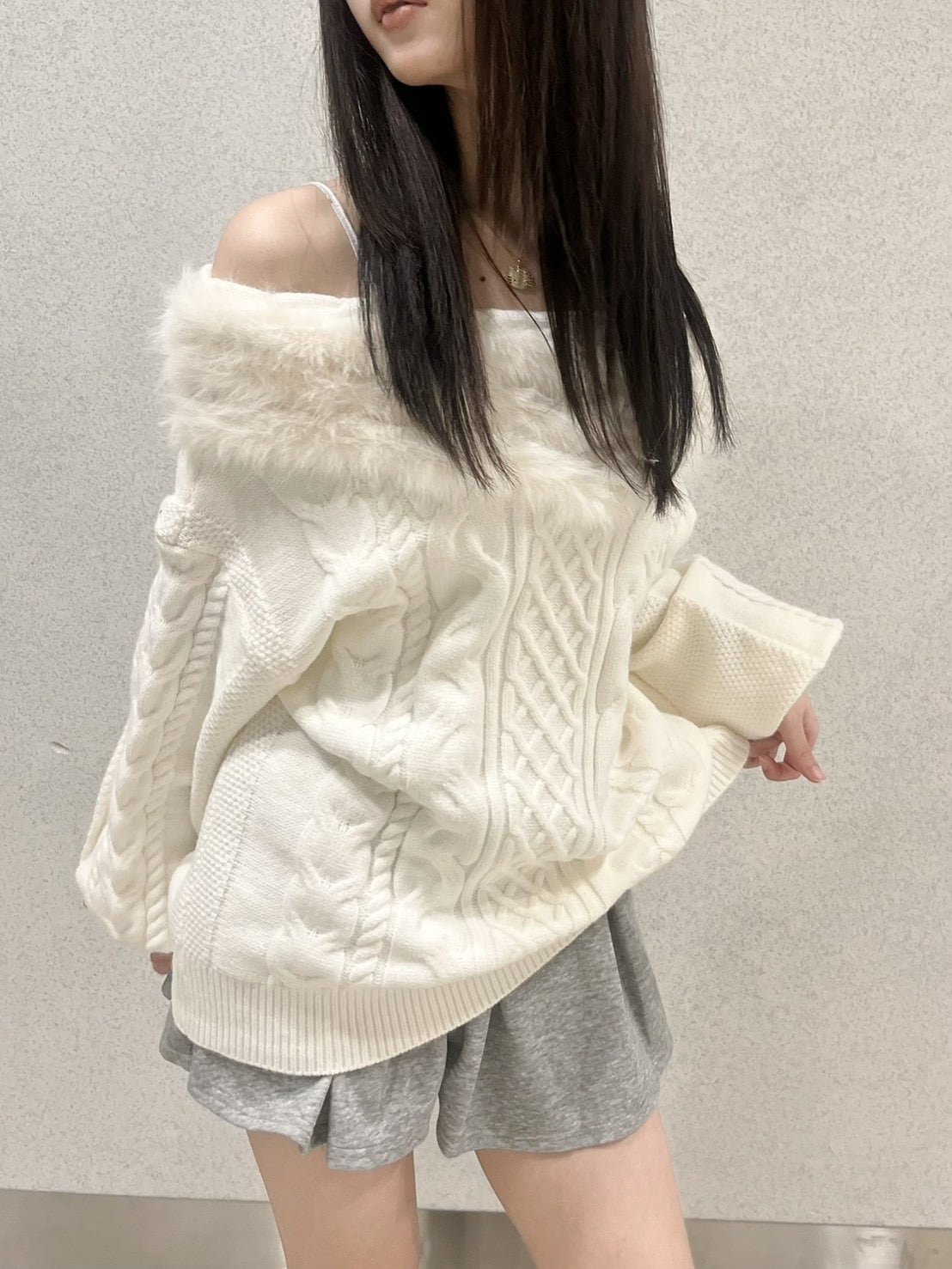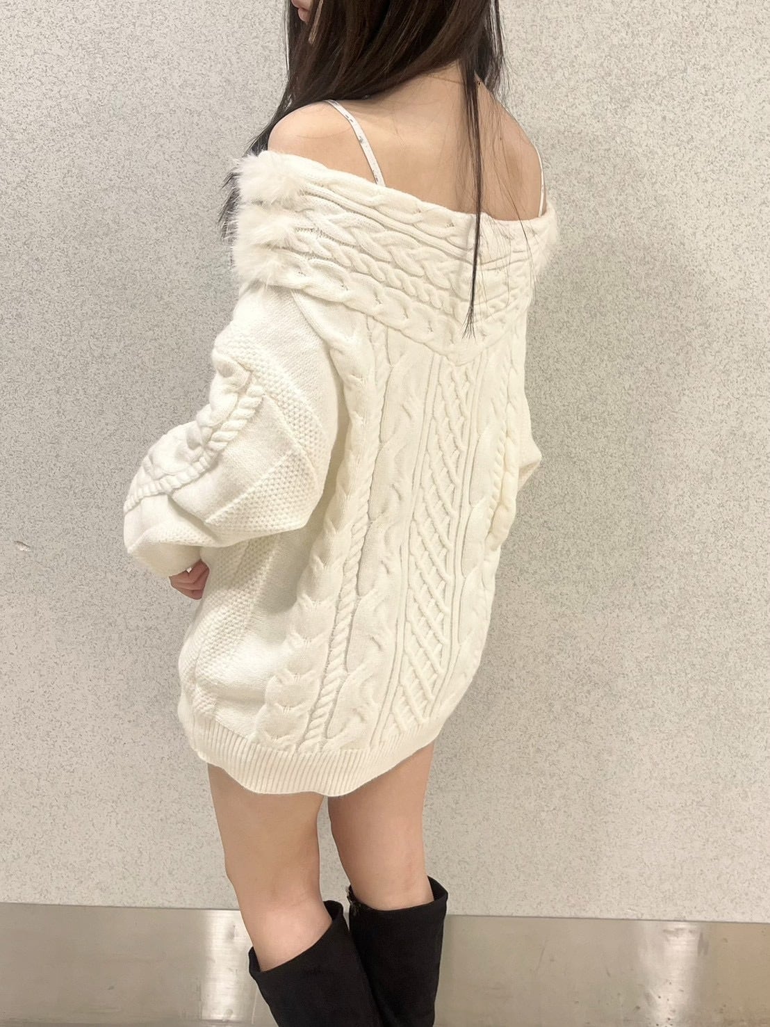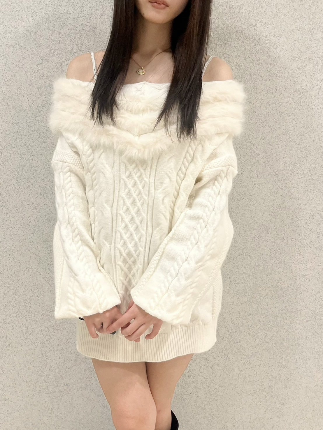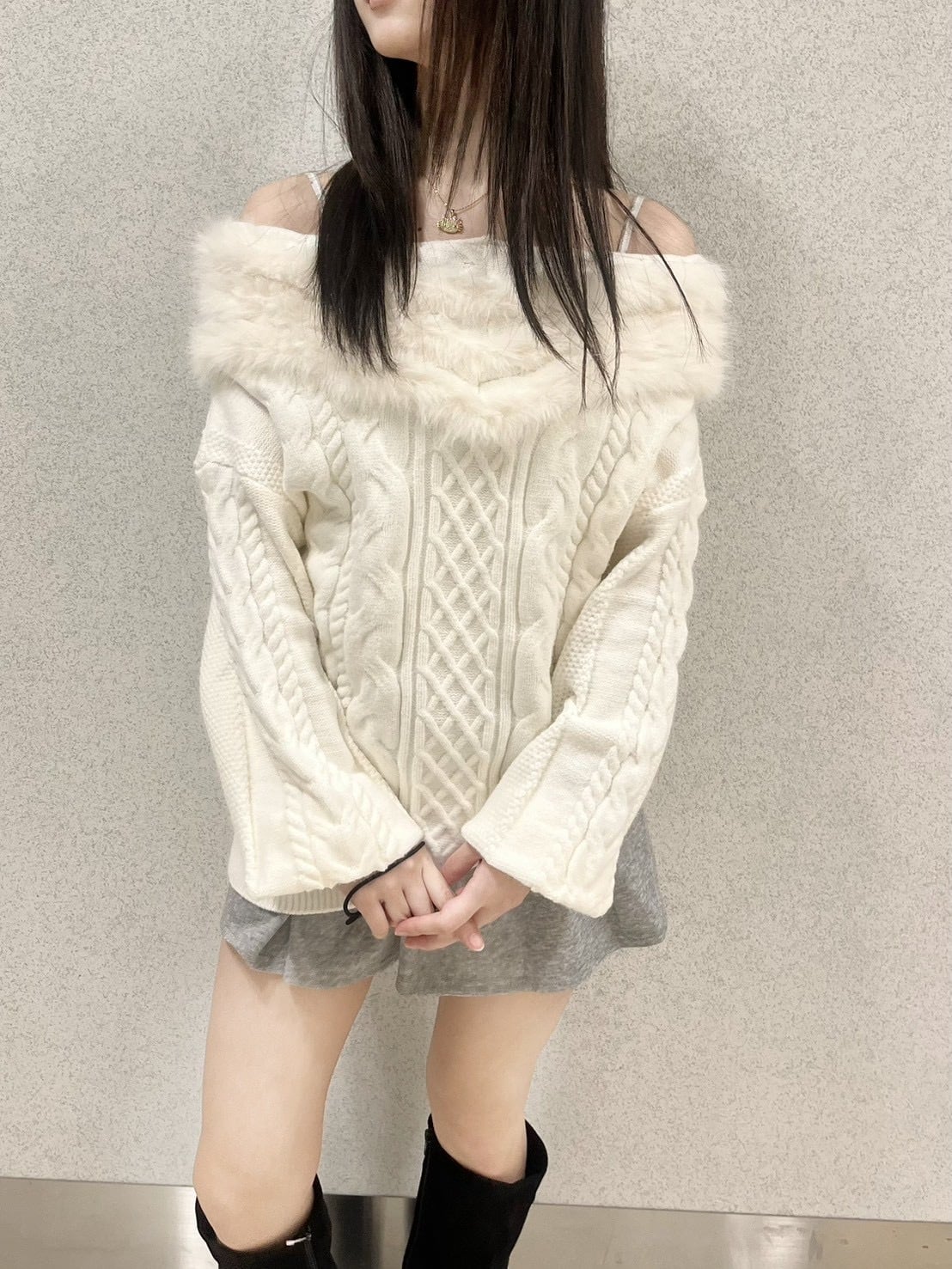 オフショルダーファーニット