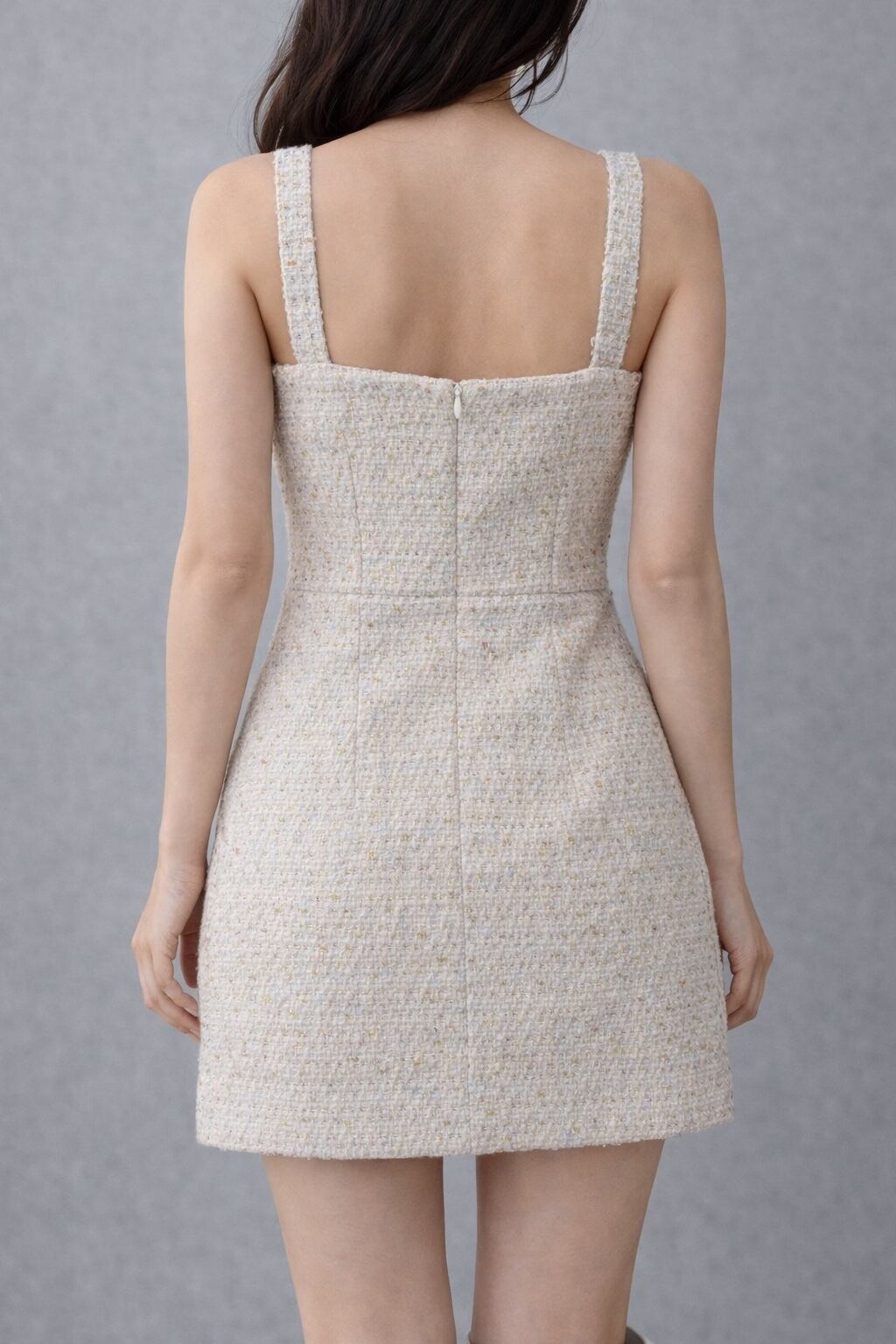 上品なツイード素材を使用したワンホンスタイルにぴったりのセットアップワンピース。