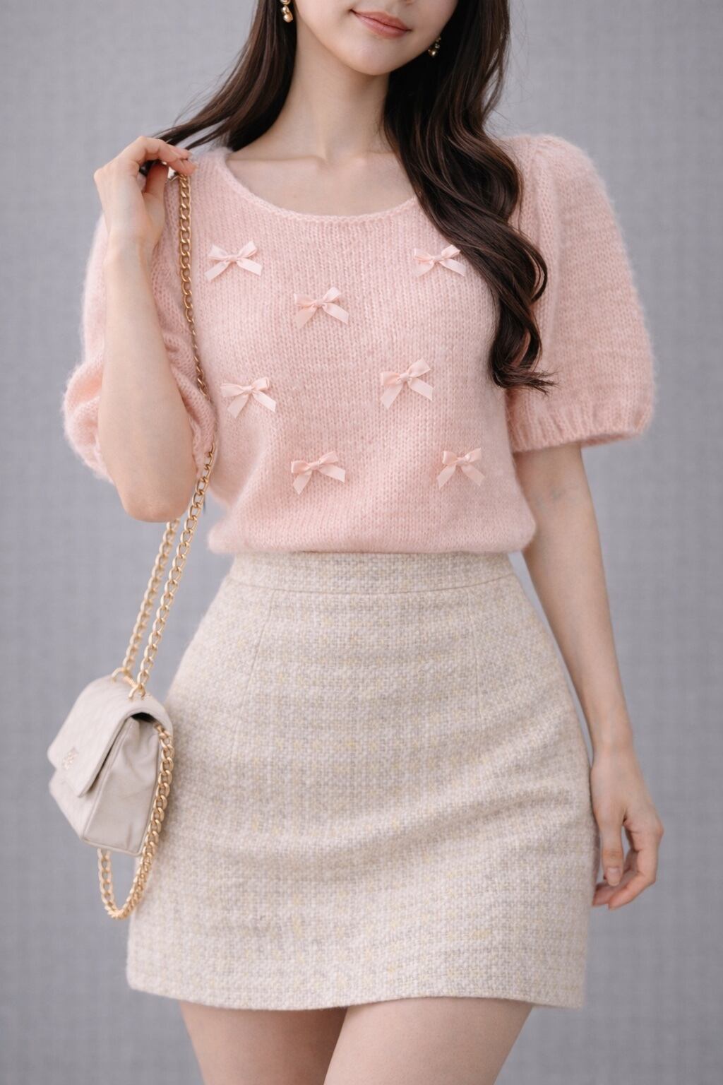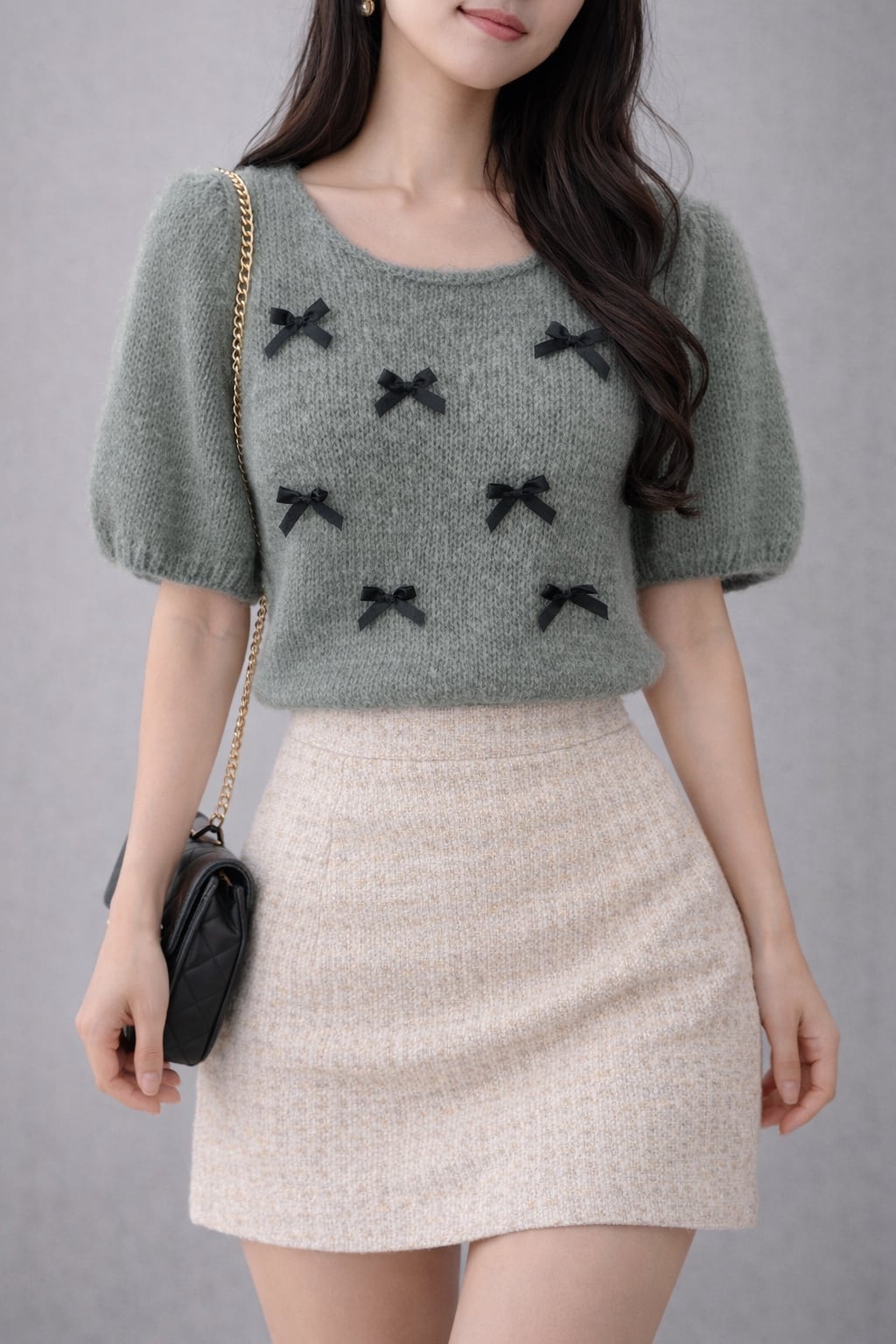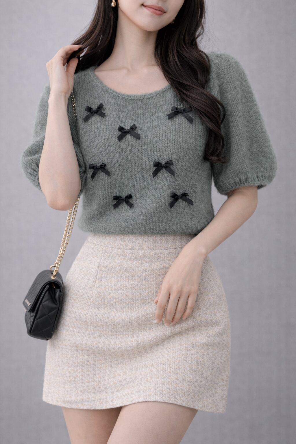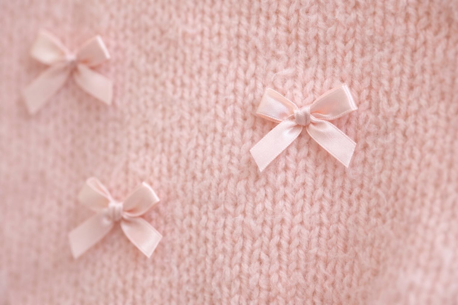 立体的なリボンデザインが可愛い、女性らしさを引き立てるニットトップス。