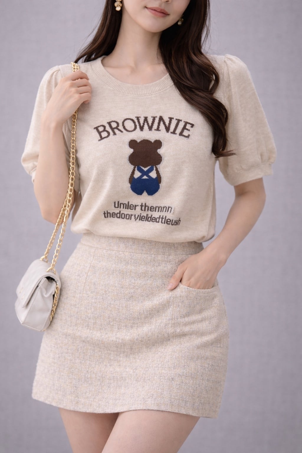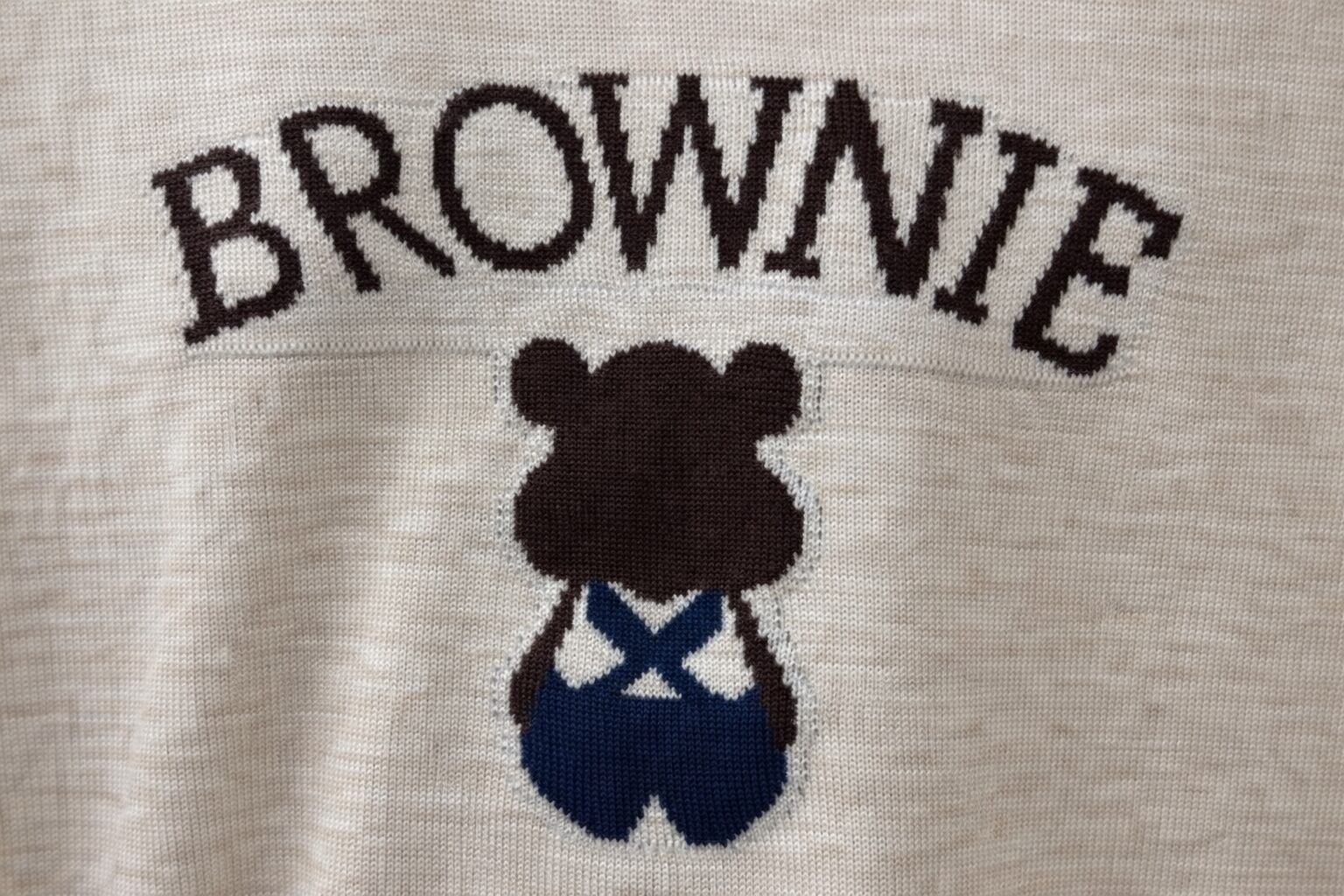 フロントのロゴとベアデザインが目を惹く、主役級のニットトップス。