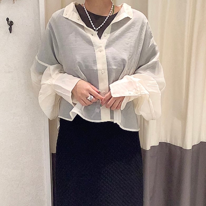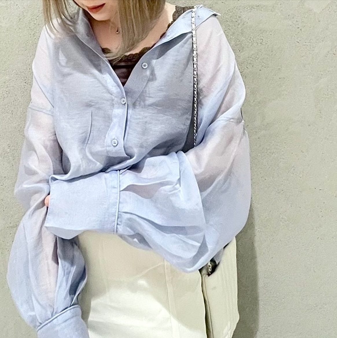 シアーポプリンの程良い透け感が今季らしい大人カジュアルに。どのアイテムとレイヤードしても様になる万能ブラウス。