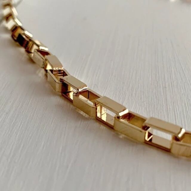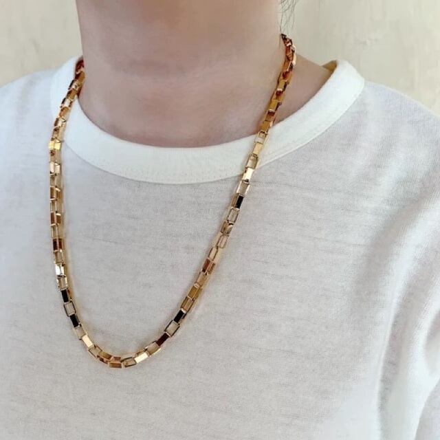 大ぶりのボックスチェーンが首元に映えるネックレス