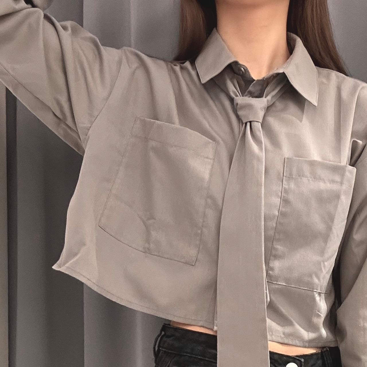 トレンドのタイ付きクロップドシャツ♡